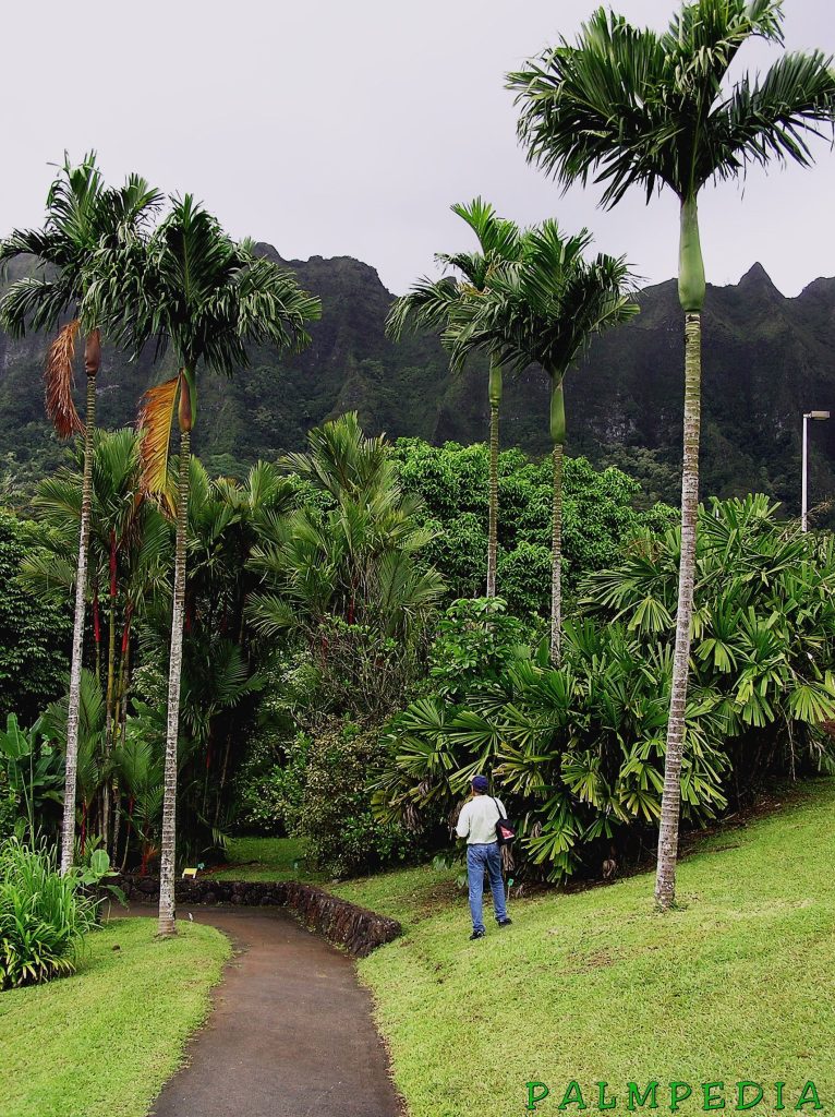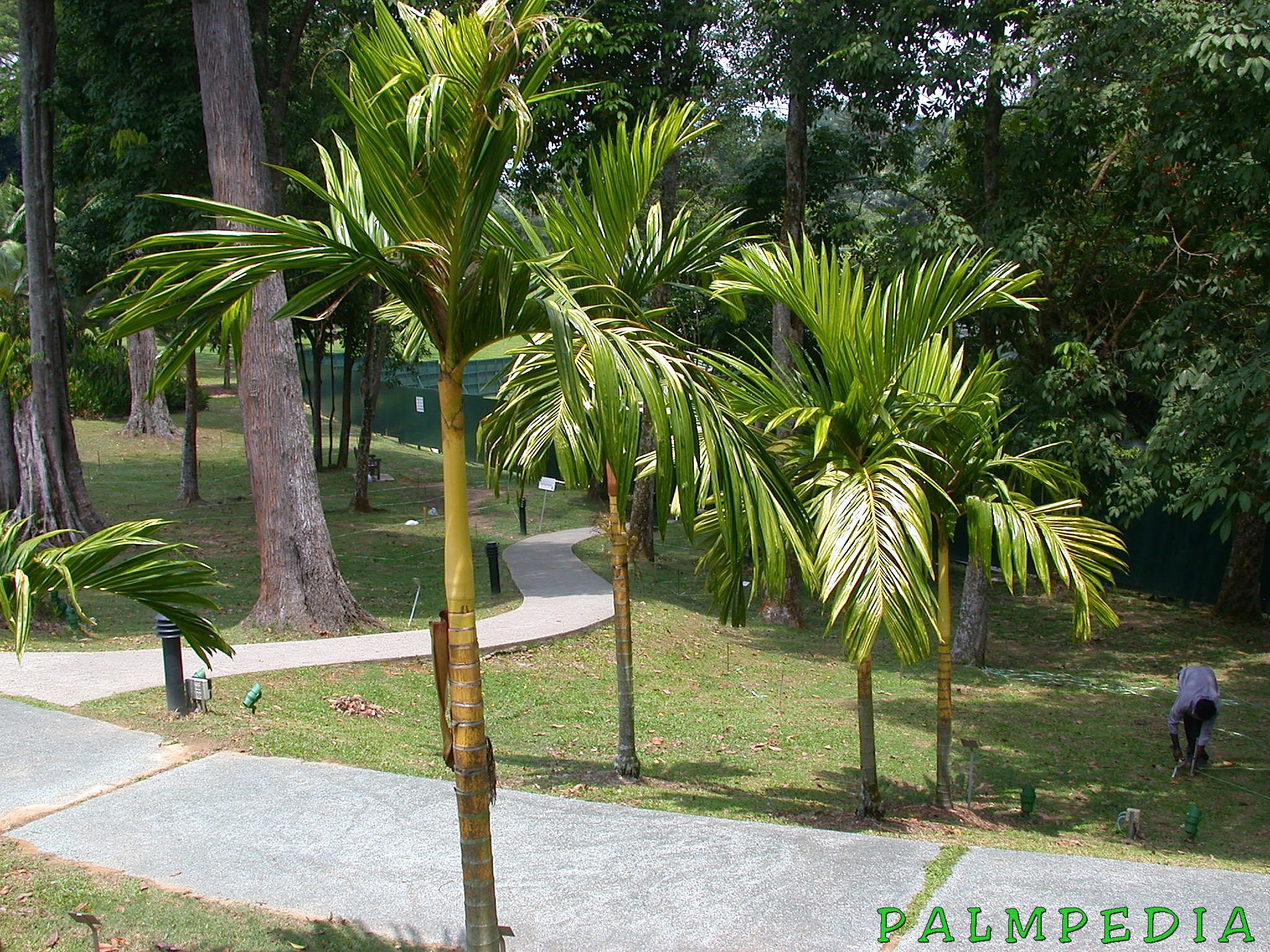 The palm is valued for its slender, elegant appearance, with a single stem up to 20–30 meters tall, a green crownshaft, and pinnate leaves 1.5–2 meters long.