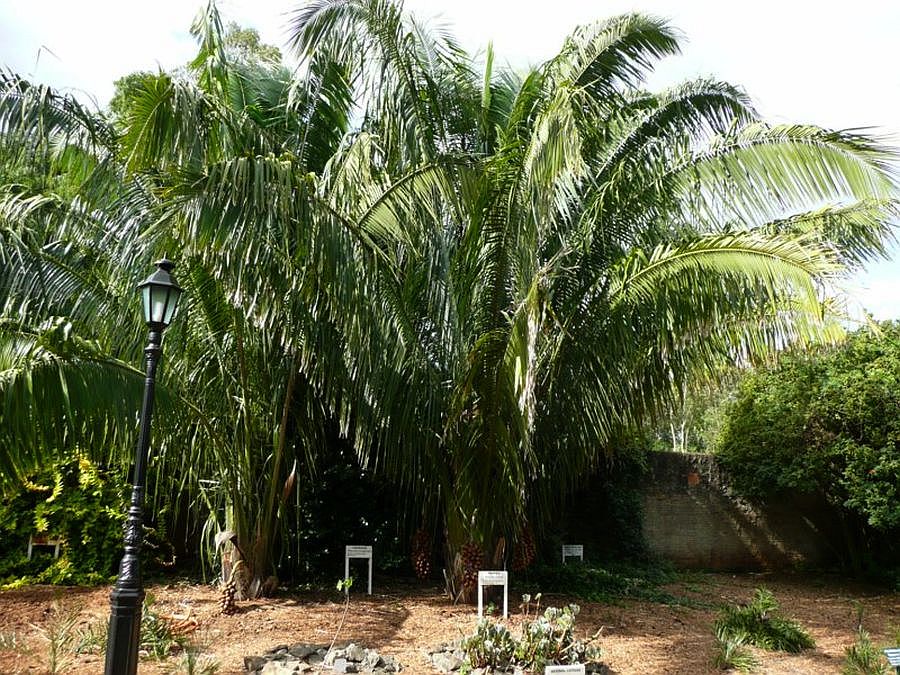 - Tall, solitary palm with a robust trunk and large, pinnate fronds