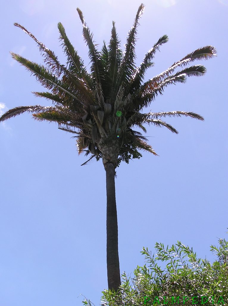 • Massive, solitary palm with a thick trunk and expansive, feathery fronds